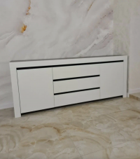 Дизайн, покоряющий с первого взгляда: Классический и одновременно современный, Логан сочетает в себе строгие линии. Две распашные дверцы, элегантно обрамляющие три вместительных выдвижных ящика в центре, создают гармоничный и сбалансированный образ. Уникальная система открывания "зацепом" добавляет нотку изысканности и обеспечивает плавное и бесшумное движение.