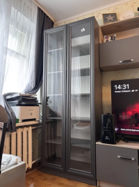 Просторные полки рассчитаны на хранение книг разного формата, а стеклянные дверцы надёжно защищают содержимое от пыли и влаги.