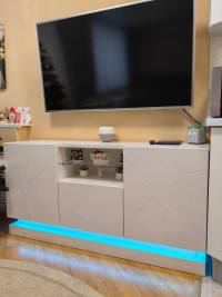 Тумба под ТВ Астон-2 станет стильным и функциональным дополнением современной гостиной. Модель привлекает внимание выразительной фрезеровкой фасадов, благодаря которой телевизионная зона выглядит более аккуратно, современно и интересно. Продуманная конструкция сочетает закрытые и открытые секции, позволяя удобно разместить технику, аксессуары и предметы декора.