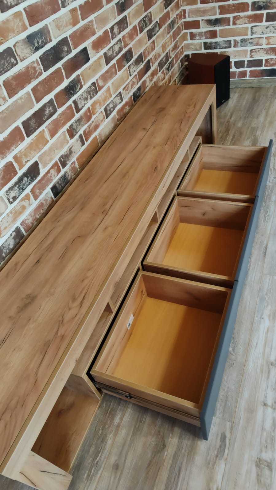 Три вместительных выдвижных ящика – это не просто место для хранения, а настоящая система организации пространства. Размеры ящиков достаточно большие, чтобы вместить все необходимые мелочи – пульты, игры, диски, медиа-плееры и многое другое.