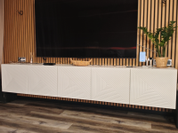 Модель отличается не только привлекательным внешним видом, но и удобной конструкцией. За распашными дверцами расположены вместительные полки, на которых можно аккуратно разместить ТВ-приставку, роутер, игровые аксессуары, документы и другие необходимые мелочи. Закрытые секции помогают поддерживать порядок и сохраняют визуальную легкость пространства.